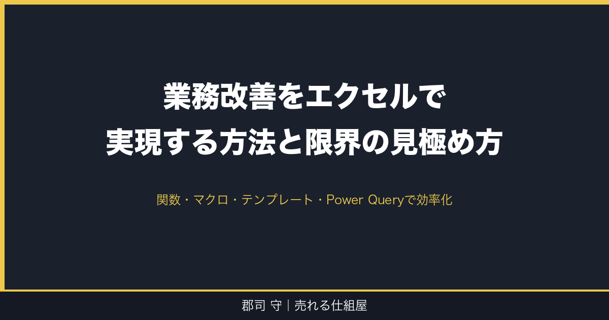 「でも、どの一つに集中すればいいかわからない」という方は、まず現状を数字で把握するところに戻ってください。数字がわかれば、自然と「ここだ」というポイントが見えてきます。