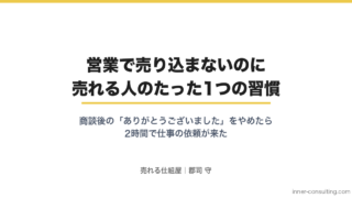 成約した3本すべてで、冒頭に「今日は売り込みません」「判断は社長がしてください」と伝えていました。この一言があるだけで、相手のガードが下がり、本音の課題が出てきます。 売り込むほど逆効果になる心理的な仕組みについては、営業で売り込まないのに売れる人のたった1つの習慣で詳しく解説しています。